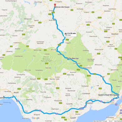 Just over 2 hours away on the heart of Wales lines is the Arvon Ale House in Llandrindod. Return connections via Arriva should come in under £30. For those wishing to stay overnight, there is a wide selection of accommodation with the Glen Usk for example often having last minute deals for £20-30 per night.